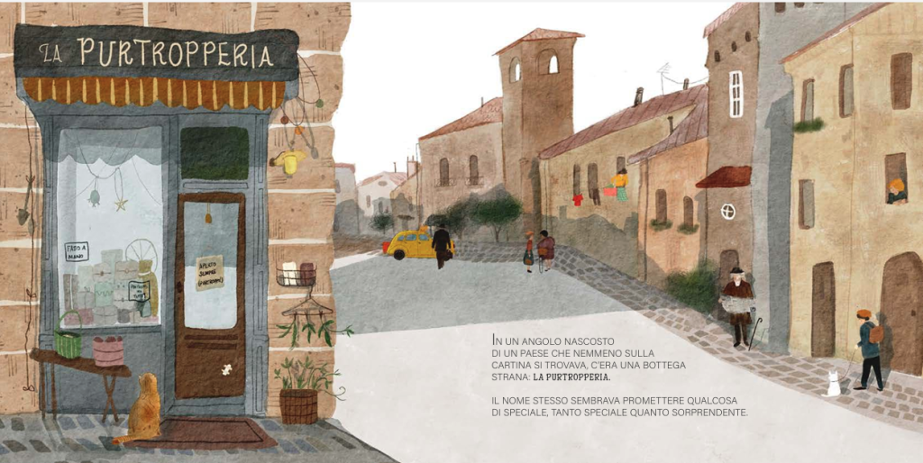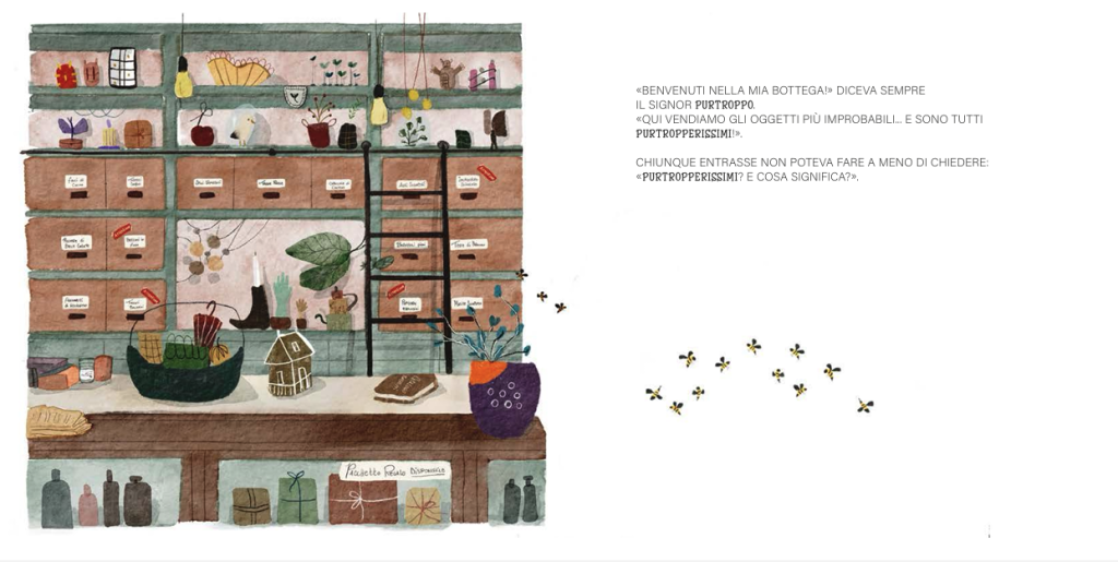 «Benvenuti nella mia bottega!» diceva sempre il Signor Purtroppo. «Qui Vendiamo gli oggetti più improbabili… e sono tutti purtropperissimi!». Chiunque entrasse non poteva fare a meno di chiedere: «Purtropperissimi? E cosa significa?